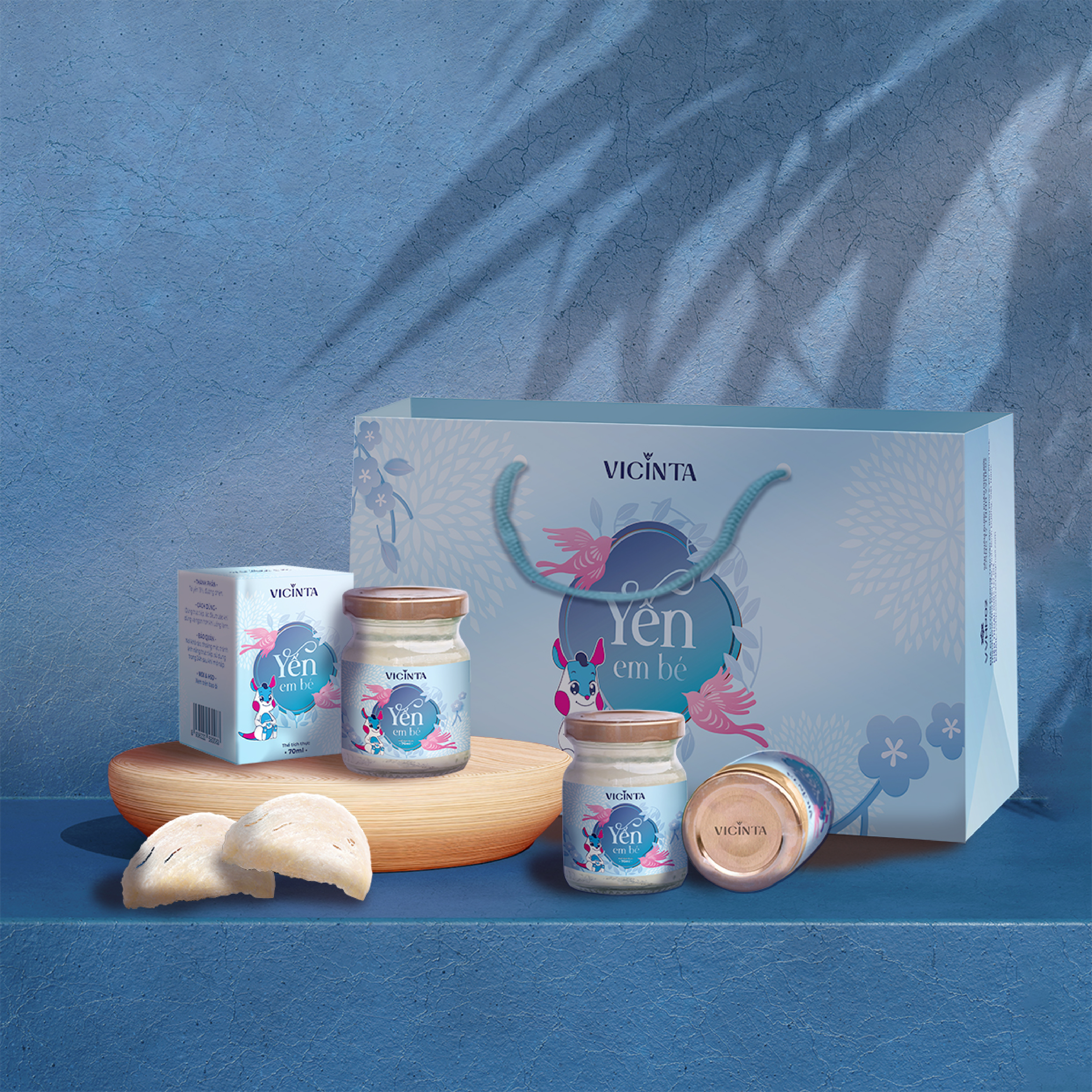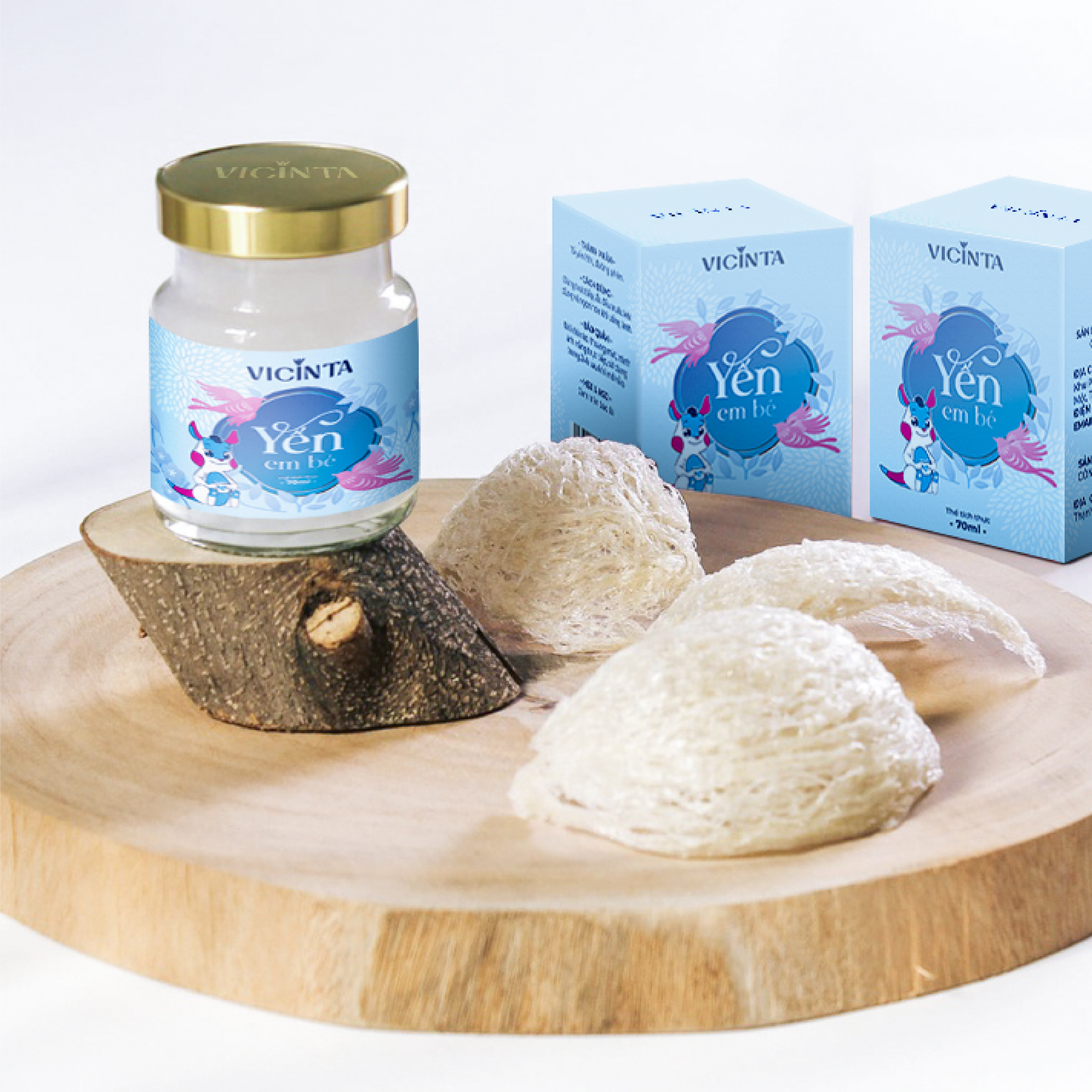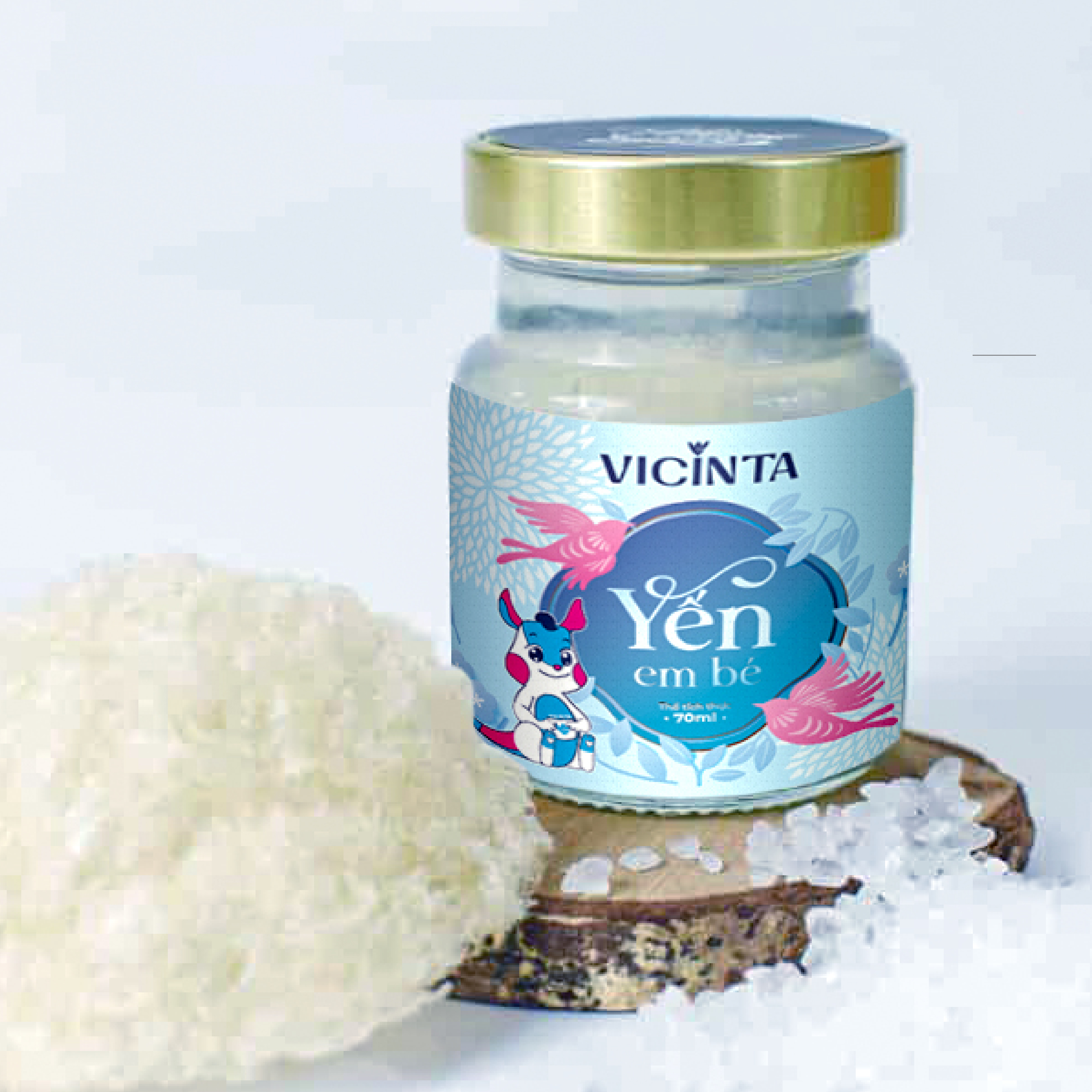 Từ góc nhìn đó, bao bì yến em bé Vicinta được xây dựng xoay quanh tinh thần nguyên bản và sự chăm sóc nhẹ nhàng. Thiết kế không tìm cách gây ấn tượng mạnh, mà lựa chọn sự tiết chế để giữ cho tổng thể luôn hài hòa và dễ tiếp cận.